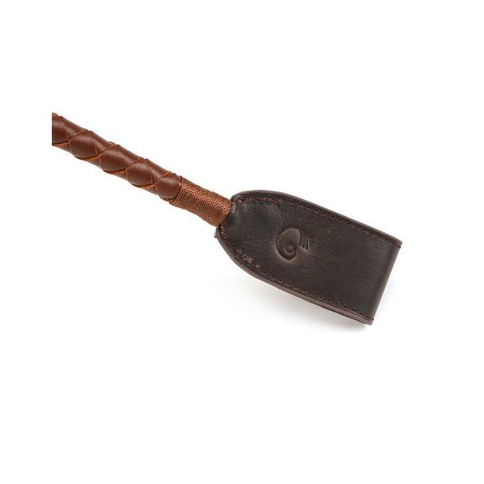 Deze crop zweep van Liebe Seele is gemaakt van een houten lichaam omwikkeld met handgevlochten echt rundleer en heeft een dubbel gelaagd hoofd. Met een totale lengte van 62 cm, een schachtlengte van 40 cm en een polsbanddiameter van 13 cm, is deze crop van hoge kwaliteit en perfect voor gebruik in verschillende situaties.