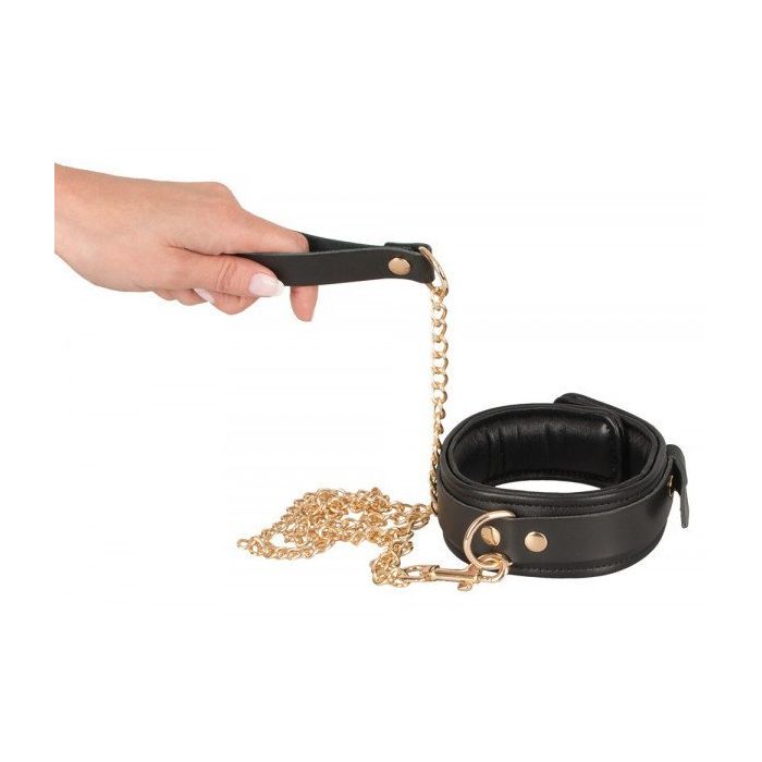 Leren Halsband met Lijn en Polsband - Zwart*