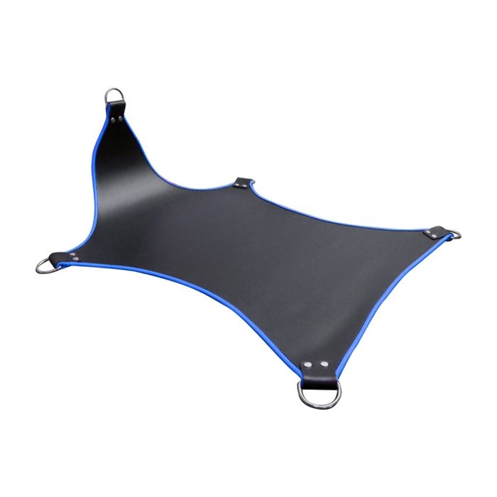 Leren Hangmat met 5 D-ringen, zonder ketting. De Sling is van dubbel leer en fraai afgewerkt met een rode of blauwe bies.
