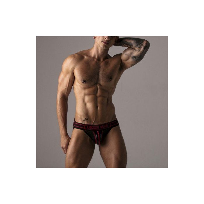 Deze unieke samenstelling zorgt voor een perfecte pasvorm die je de hele dag ondersteunt, of je nu aan het sporten bent of gewoon je zelfvertrouwen wilt vergroten. De stoere zwarte kleur geeft een krachtige uitstraling, terwijl de kunstleren details een edgy flair toevoegen die je look naar een hoger niveau tilt. Met een handige rits aan de voorkant en een prominent logo is deze jockstrap niet alleen praktisch, maar ook een echte eyecatcher die je niet wilt missen.