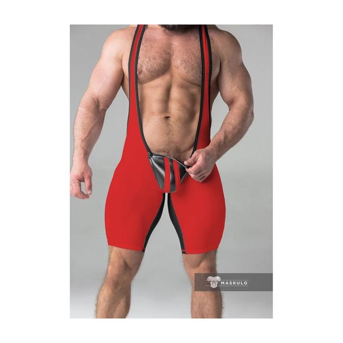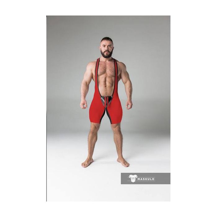 Maskulo Armored Fetish Wrestling Singlet Open Rear - Red*