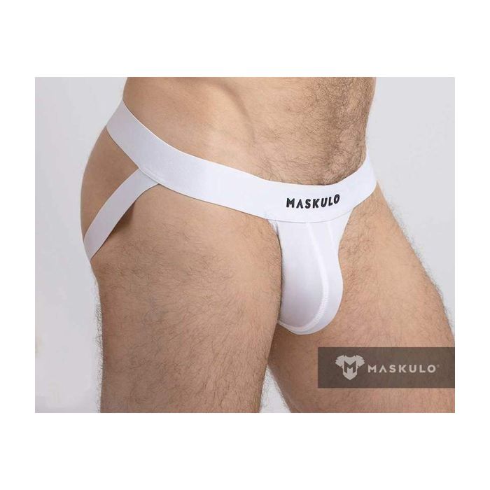 Stijlvol en comfortabel. Dat is de Microfiber Jockstrap - Wit van Maskulo! Deze geweldige basic jock zit als gegoten en ziet er lekker uit. De jockstrap heeft een lage tailleband met subtiel Maskulo logo voorop.