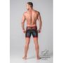 Deze strakke short is gemaakt van hoogwaardig spandex met stretch kwaliteit. Het spandex ziet eruit als leer en wordt afgewisseld met elastiek en doorzichtig mesh. In deze combinatie zie jij er verrukkelijk uit.