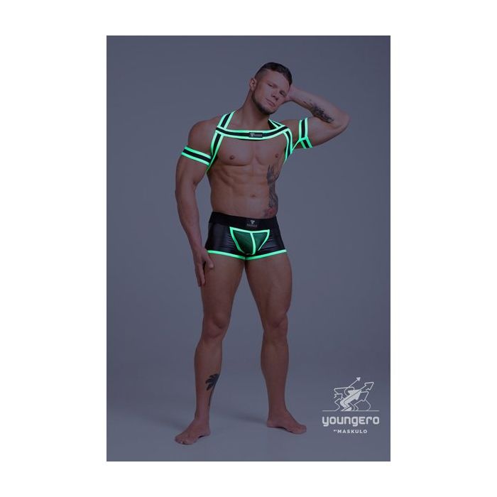 Maskulo Youngero Harnas met Bicep Banden - Neon Groen