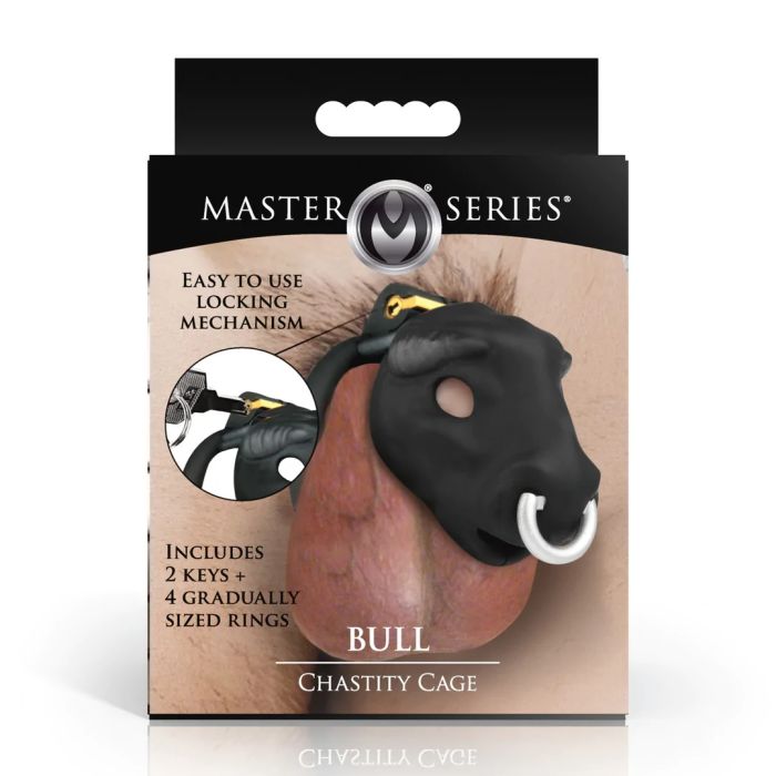 Deze unieke cage is ontworpen met een indrukwekkend bull head dat de punt van de schacht bedekt, wat zorgt voor een veilige en comfortabele pasvorm. Met vier verschillende ringen die zijn afgestemd op diverse maten van schacht en ballen, vind je altijd de perfecte fit die bij jouw lichaam past. Gemaakt van lichaamveilige, ftalaatvrije kunststof, biedt deze chastity cage niet alleen veiligheid, maar ook gemoedsrust tijdens gebruik. De open mond en ooggaten van de bull fungeren als een cum-thru tip, wat zorgt voor een minimale ademhaling en extra comfort tijdens het dragen.