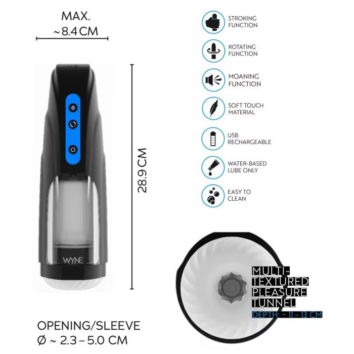 Deze unieke gadget is uitgerust met een opwindende roterende binnensleeve die niet alleen draait, maar ook op en neer beweegt voor een intensieve ervaring. Met maar liefst 10 verschillende standen en 2 snelheden kun je eenvoudig de perfecte instelling kiezen die bij jouw wensen past, allemaal met een druk op de knop. En om de ervaring nog intenser te maken, ontvang je een koptelefoon waarmee je kunt genieten van sexy gefluisterde kreuntjes die de sfeer compleet maken.