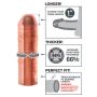 Deze innovatieve sleeve is speciaal ontworpen om je penis met maar liefst 2,5 cm te verlengen en de dikte met een indrukwekkende 66% te vergroten. Dankzij de sterke adering en de stevig gevulde eikel voel je niet alleen een merkbaar verschil, maar zie je ook de transformatie. Deze sleeve biedt niet alleen een visuele boost, maar ondersteunt ook je erectie, waardoor je langer en intenser kunt genieten van elke ervaring.