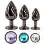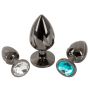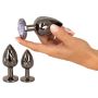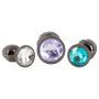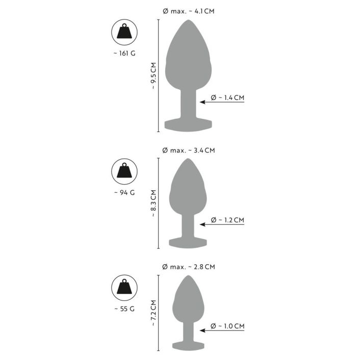 Ontdek de ultieme ervaring van anale stimulatie met de Decoratieve Trio Pluggen van ANOS, een hoogwaardige set van metalen butt plugs die speciaal zijn ontworpen voor zowel beginners als gevorderden. Deze set bevat drie verschillende pluggen, elk met unieke afmetingen en gewichten, waardoor ze perfect zijn voor rektraining en het verkennen van nieuwe sensaties. De pluggen zijn versierd met schitterende, gekleurde edelstenen die niet alleen esthetisch aantrekkelijk zijn, maar ook zorgen voor een veilige en comfortabele ervaring dankzij de anaalveilige stop.