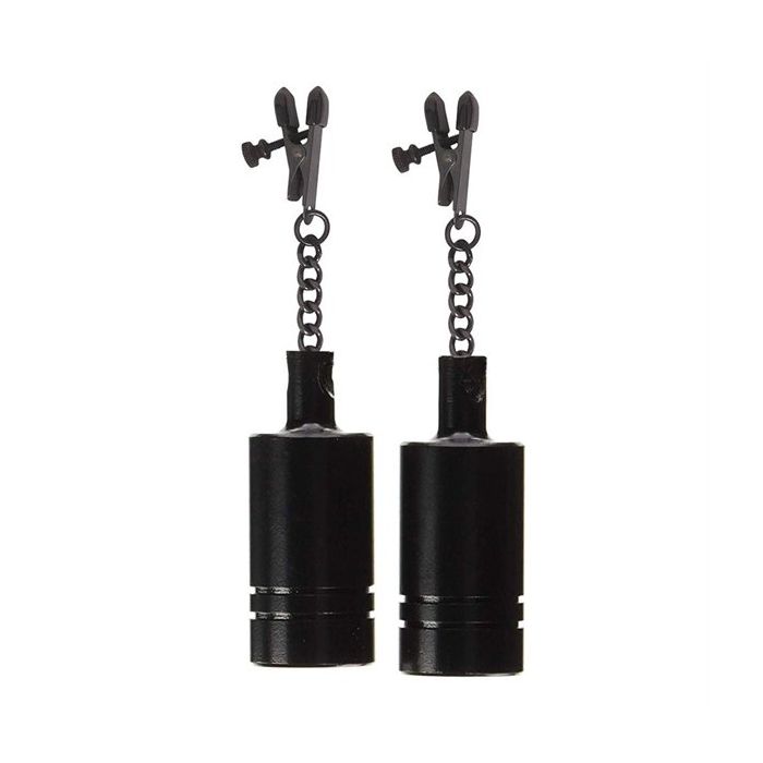 Ben je een liefhebber van tepelklemmen? Ga dan voor deze metalen tepelklemmen met zware gewichten van Dusedo en geniet next level van kinky bdsm spelletjes. Deze spannende zwarte metalen tepelklemmen zijn voorzien van zware gewichten waardoor jouw grenzen tussen pijn en genot maximaal verkend worden. Een super opwindend accessoire voor liefhebbers van ruig en kinky. De Dusedo metalen tepelklemmen kunnen zo strak aan gedraaid worden als je zelf wilt en voelen dankzij de siliconen beschermdopjes prettig aan. Daarnaast zijn de tepelklemmen volledig bodysafe en waterdicht en kunnen ze door zowel vrouwen als mannen gedragen worden. Maak de seks nog spannender en intenser met deze metalen tepelklemmen met zware gewichten.