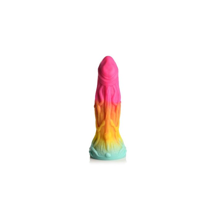 Ontdek de unieke ervaring van de kleurrijke, vormveranderende chimera-dildo, een opvallend seksspeeltje dat speciaal is ontworpen om jouw plezier naar een hoger niveau te tillen. Deze dildo, vervaardigd uit hoogwaardig en flexibel siliconenmateriaal, biedt niet alleen een veilige en ftalaatvrije ervaring, maar ook een intense stimulatie dankzij de dikke en gestructureerde vorm. De schacht is versierd met touwachtige aderen die zich kronkelen en kruisen, wat zorgt voor extra sensatie tijdens het gebruik. Het monsterlijke, gerimpelde hoofd en de kleine hagedis die zich aan de regenboogkleurige schacht vasthoudt, maken dit speeltje niet alleen visueel aantrekkelijk, maar ook een bron van opwindende ontdekkingen.