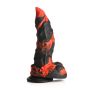 Deze demonische dildo is een must-have voor iedereen die houdt van een spannende en intense ervaring! Met zijn gedurfde rode en zwarte kleuren trekt hij onmiddellijk de aandacht en belooft hij een avontuur vol sensatie. De puntige, taps toelopende top is ontworpen voor diepe penetratie, terwijl de kronkelende aderen langs de dikke schacht een extra textuur bieden die je zintuigen prikkelt. De grote ballen aan de onderkant zorgen voor een extra stuiter-effect, waardoor je elke beweging nog intenser kunt ervaren. Het ontwerp geeft het een vloeibare uitstraling, alsof het gemaakt is van zware, dikke vloeistoffen, wat de fantasie verder aanwakkert.