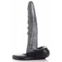 De Monster Dildo The Gargoyle is een uitzonderlijk seksspeeltje dat speciaal is ontworpen om je meest intense verlangens te vervullen. Met zijn unieke ribbels en bobbels langs de schacht biedt deze dildo een ongeëvenaarde stimulatie, terwijl de gladde punt aan het hoofd zorgt voor een soepele en aangename inbreng. De opvallende zwarte ballen aan de basis voegen niet alleen extra sensatie toe, maar zijn ook functioneel; ze kunnen stevig worden vastgehouden dankzij de brede, geflensde basis, wat zorgt voor een veilige en comfortabele grip tijdens gebruik.