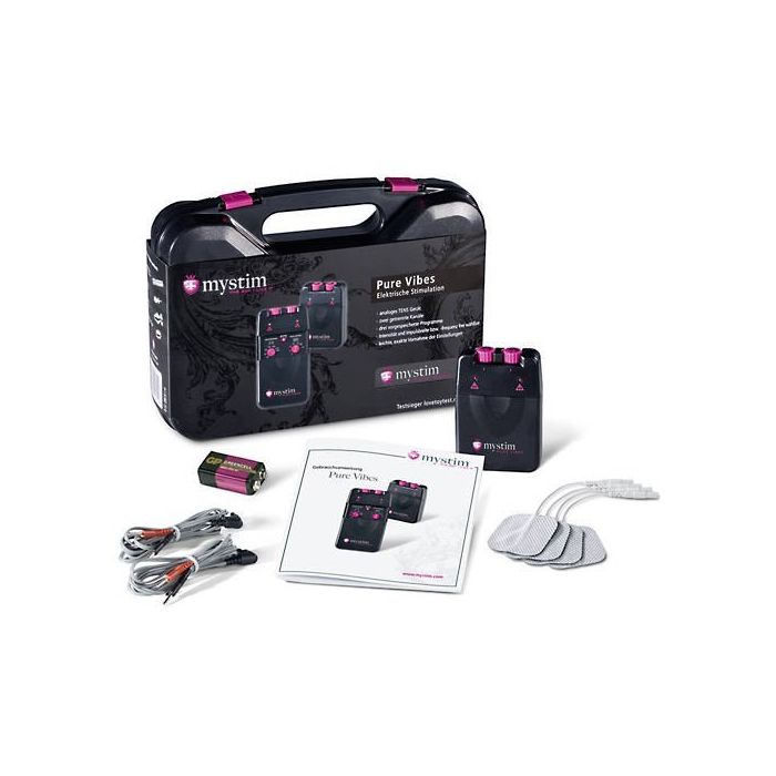 De Mystim Pure Vibes is een analoog nerv stimulator en is een zeer goede beginnersset. Deze bedieningsunit geeft je eindeloze stimulatie die kan variëren van zachte prikkelingen tot hele heftige prikkelingen. De kanalen kunnen handmatig worden geconfigureerd maar je kunt ook kiezen uit drie verschillende programma's al voorbereid voor je eigen gemak. Door middel van lichte elektrische impulsen kun je bijna ieder gebied van uw lichaam hevig stimuleren. Hoe je het zelf wilt! Geniet van electro sex van het onbeschrijfelijke gevoel van de lichte stroomstootjes die zich over het hele lichaam zullen uitspreiden.