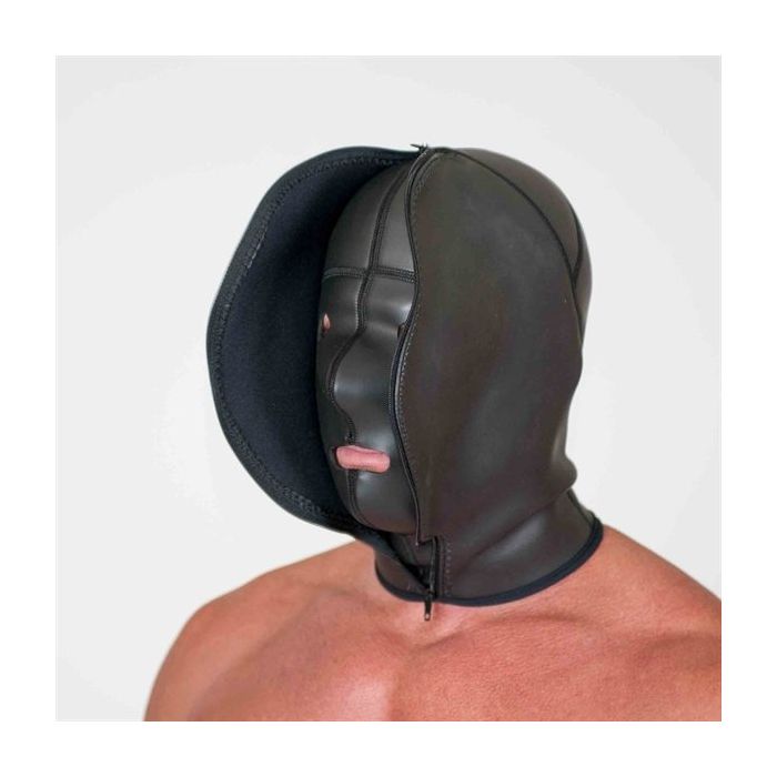 Met dit neopreen masker gaan jullie eindelijk een stapje verder in de spannende werled van de bdsm en het vastbinen, opsluiten van elkaar. Het masker is volledig om het hoofd heen te brengen en suit zich volledig zodat je sub werkelijk niks meer kan zien, horen en ruiken. De rits aan de voorkant is te openen en daarachter is het hoofd ook nog bedekt met een masker maar dan laat het de ogen en mond vrij.