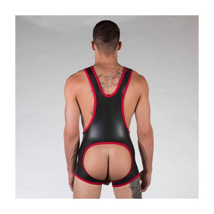 Dit sexy worstel pakje Neoprene Open Crotch Wrestling - Red van 665Leather zal het perfect doen in de slaapkamer of op een kinky feest. He is open bij de billen en rond de penis en balzak zodat je edele delen zichtbaar zijn, en klaar voor gebruik wanneer de spanningen hoog oplopen. De randen zijn schitteren afgestikt in het rood waardoor het Neoprene Open Crotch Wrestling - Red worstel pakje een duurzaam leven zal hebben.