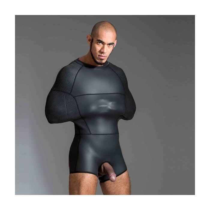 Ben jij op zoek naar een bodysuit die ervoor zorgt dat jouw slaaf ziijn armen niet kan gebruiken maar waar jij nog wel vrij toegang hebt tot zijn genotsstaaf en zijn geheime ingang? Dan is de Neoprene Pod Suit - Black van 665Leather de juiste suit voor jou. De bodysuit in bondage stijl is gemaakt van hoogwaardig neopreen materiaal die jij je slaaf makkelijk aan en uit kan trekken door de rits aan de achterkant. In de bodysuit zit een interne sleeve waardoor het bdsm spel nog intenser wordt. Bij de penis en de billen is de Neoprene Pod Suit - Black open. Zo kan jij alles met hem doen waar je zin in hebt en je slaaf zal niet kunnen tegen stribbelen.