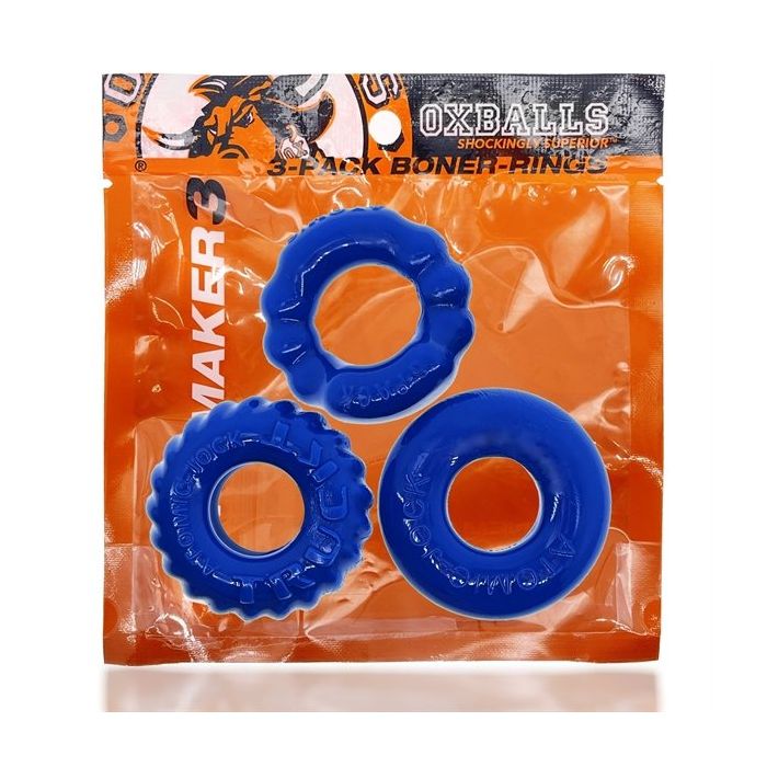 Oxballs Bonemaker 3-PACK Cockring Kit - Blauw