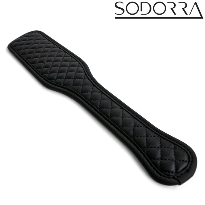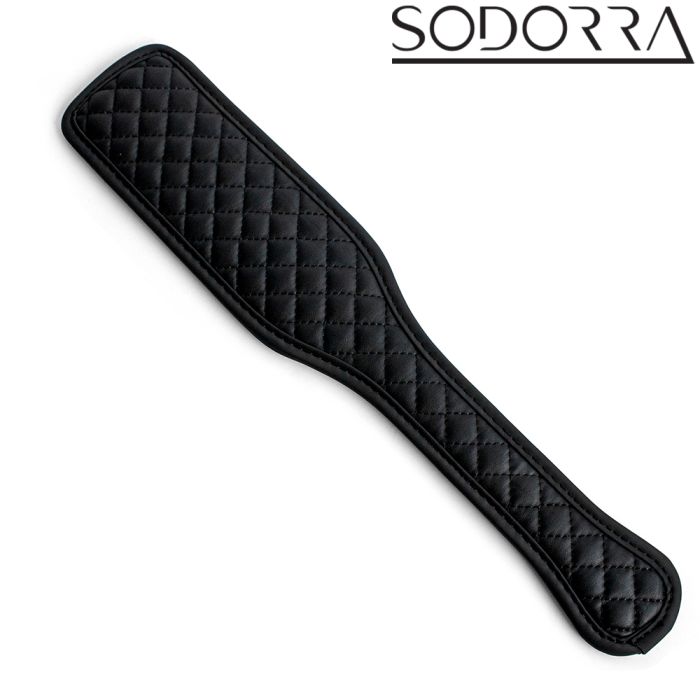 De SODORRA Vegan + Neo Diamond Paddle is een meesterwerk vervaardigd uit hoogwaardig, zacht veganistisch leer en duurzaam neopreen. Deze paddle is niet alleen ontworpen voor kracht, maar ook voor comfort, waardoor hij perfect is voor zowel beginners als ervaren liefhebbers. Het elegante, volledig zwarte ontwerp met een luxueuze diamantvormige vulling voegt een verfijnde uitstraling toe aan jouw kinky fantasieën. Met de ideale balans tussen zachtheid en impact, stelt deze paddle je in staat om de grenzen van genot te verkennen en je partner op een spannende manier te prikkelen. Combineer de paddle met de SODORRA Vegan + Neo Diamond Restraints voor een onvergetelijke ervaring waarin je partner geblinddoekt en vastgebonden is, en laat je meevoeren op een opwindende reis van ontdekking en plezier. Wees onderdanig, wees dapper en laat je verlangens de vrije loop met de SODORRA Vegan + Neo Diamond Paddle.