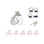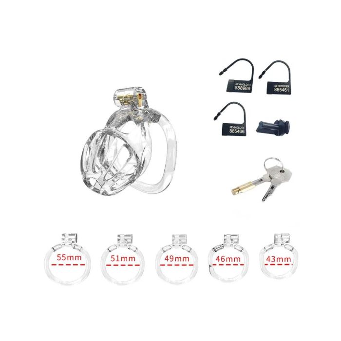 Deze set bevat vijf ringen in verschillende maten, variërend van 43 tot 55 mm, zodat gebruikers de ideale pasvorm kunnen vinden die perfect aansluit bij hun lichaam. Daarnaast wordt de set geleverd met een koperen inbouwslot en drie genummerde plastic hangsloten, die na gebruik eenvoudig kunnen worden afgeknipt met een schaar. Dit biedt niet alleen een veilige manier om de kooi te vergrendelen, maar waarborgt ook de veiligheid tijdens reizen. Voor extra gemak zijn er twee plastic schroeven inbegrepen als alternatief voor de koperen sloten, wat bijzonder handig is voor luchthaventransport, aangezien de plastic sloten geen problemen opleveren bij veiligheidscontroles.