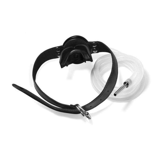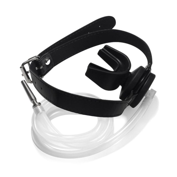 Dit accessoire is een metalen penisplug met een inbrengbare lengte van 4 cm en een breedte van 7 mm. Het heeft een verstelbare band van 43 tot 61 cm en een flexibele slang van 1 meter. Met de prop kan de partner de urine direct drinken.