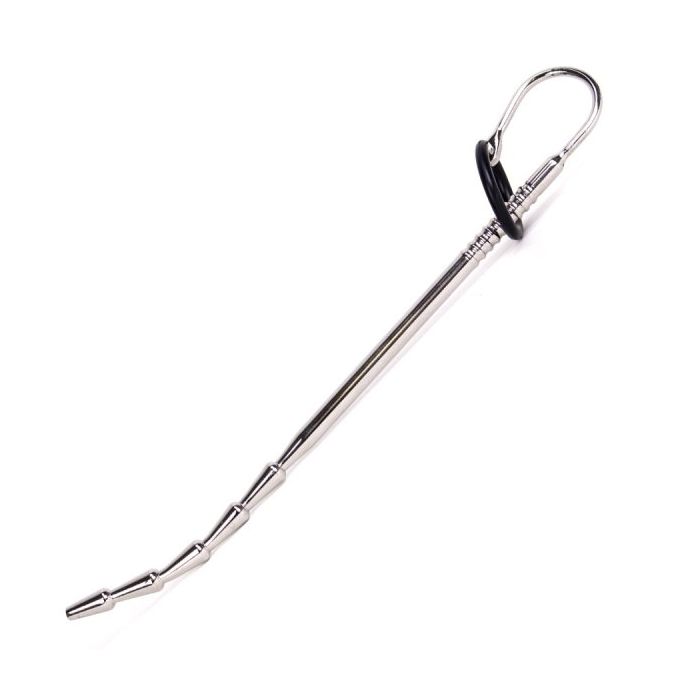 Deze extra lange penisstick is perfect voor elke man die ervan houdt om tot zeer diep de urinebuis te stimuleren. Het uiteinde is gebogen en heeft 5 verschillende delen die je overduidelijk kan voelen wanneer jij hem naar binnen brengt. Aan het uiteide zit een rubberen ring waarvan er twee maten worden meegeleverd. Ze dienen als cockring en helpen je penis goed stijf te houden. Doordat hij gemaakt is van rvs is de plug snel en eenvoudig te reinigen.