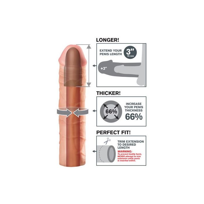 Maximale verlenging met deze Fantasy X-tensions Mega 3 Extension! Terwijl het zachte materiaal je als een tweede huid omarmt, verschaft het je partner ongekend genot. En maak je vooral niet druk over de pasvorm. De lengte is naar wens bij te snijden! Groot plezier voor twee met deze Fantasy X-tensions Mega 3 Extension!