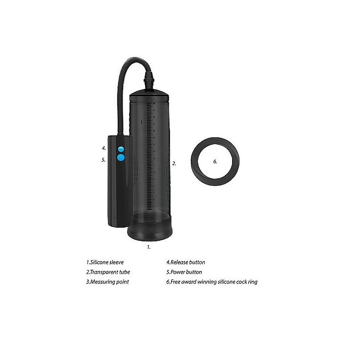 Deze Extreme Power automatische penispomp van Pumped by Shots doet niet alleen extreem goed zijn werk, maar ziet er nog eens extreem stijlvol uit door de volledige zwarte kleur. Een penispomp is ideaal om je penis tot ongekend grote hoogtes te pompen. Je erectie zal harder worden dan ooit te voren. De Extreme Power Automatische Penispomp heeft een lengte van 24 cm (22 cm inbrengbaar). Kortom; hij geeft jou alle ruimte om te groeien. Steek je penis naar binnen en ontdek de kracht van de automatische vacuüm pomp. Dankzij de siliconen rand bij de opening, schuurt je penis niet onaangenaam tegen de randen van de pomp. De pomp heeft meerdere standen en is zeer gemakkelijk in gebruik. Ontdek welk standje jou het gewenste resultaat geeft en laad na gebruik eenvoudig weer op voor het volgende avontuur.