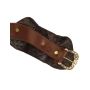 Deze handgemaakte halsband en riem van het merk Liebe Seele zijn vervaardigd van hoogwaardig rundleer in twee verschillende kleuren en texturen. De dubbele laag zorgt voor extra stevigheid en de voering van lamsleer zorgt voor extra comfort voor je sub. De halsband is verstelbaar tussen 36,5 en 45 cm en is voorzien van kenmerkende accenten in het goud van The Equestrian.