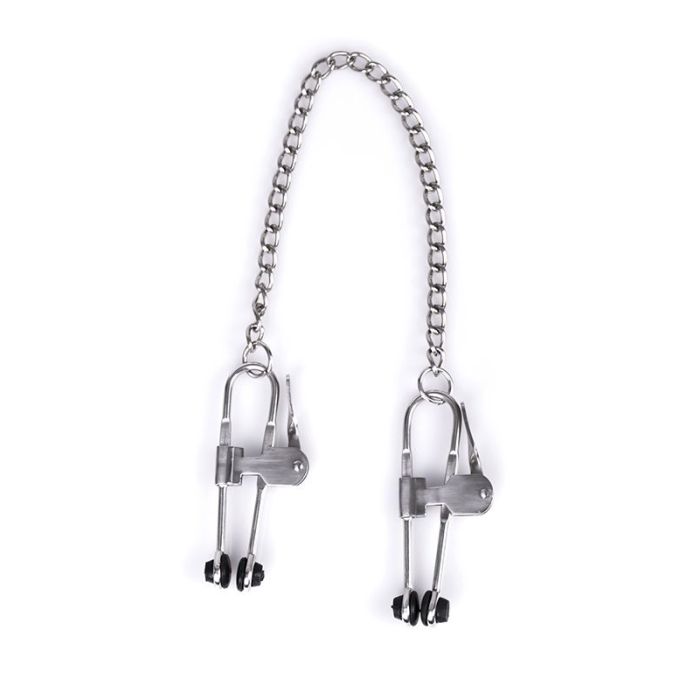 Deze tepelklemmen trekken zich strakker om de tepel wanneer je de ketting aantrekt. Voor jou als meester of meesteres is het een uitgesproken middel om je onderdaan daar te krijgen waar jij die wilt hebben voor een lekker partijtje BDSM seks. Deze tepelklemmen zijn uitstekend geschikt voor beginners en ervaren BDSM liefhebbers. Met deze metalen tepelklemmen geef je het seksleven weer een extra stimulans.