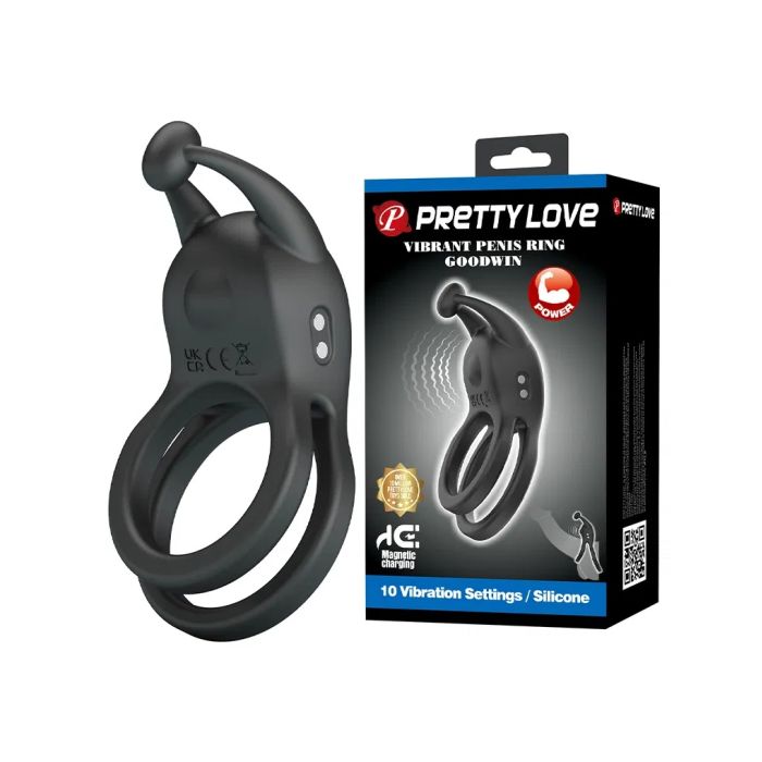 Pretty Love Vibrerende Dubbele Cockring Goodwin - Zwart