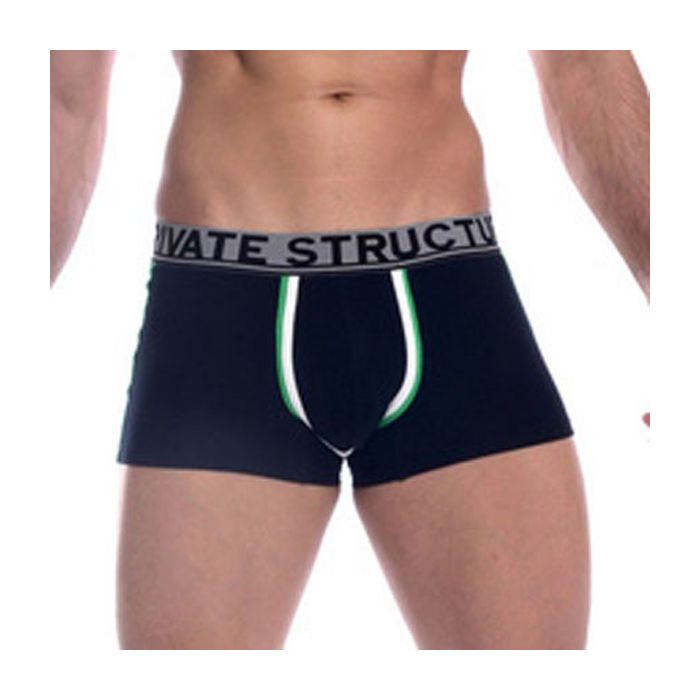 Deze boxershort voor mannen is de perfecte combinatie van comfort en stijl. Met een lage taille en een strakke pasvorm sluit hij mooi aan op je lichaam, waardoor je je de hele dag door zelfverzekerd voelt. Het Private Structure logo op de tailleband voegt een trendy touch toe, terwijl de korte broekspijpen zorgen voor een sportieve uitstraling. De zwarte kleur met witte en groene details maakt deze boxershort niet alleen functioneel, maar ook modieus. Gemaakt van 95% katoen en 5% elastaan, biedt hij een ademende en rekbare pasvorm die ideaal is voor elke gelegenheid, of je nu aan het sporten bent of gewoon lekker thuis ontspant.