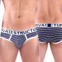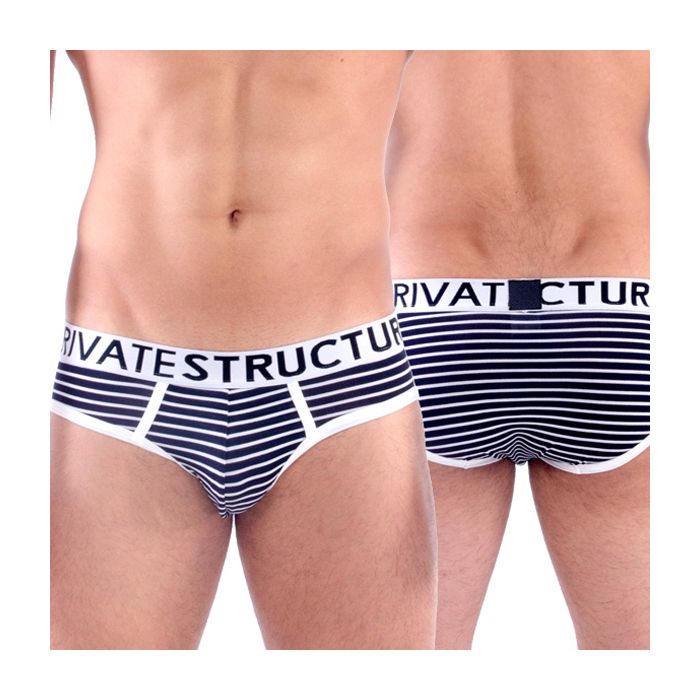Maak kennis met onze stijlvolle mannen slip, perfect voor de moderne man die comfort en flair waardeert. Dit model heeft een lage taille en een strakke pasvorm die je lichaam mooi accentueert, waardoor je je zelfverzekerd voelt, of je nu thuis bent of onderweg. Het Private Structure logo op de tailleband voegt een vleugje luxe toe, terwijl het gestreepte design in marineblauw met witte strepen en stiknaden een frisse, sportieve uitstraling geeft. Gemaakt van een hoogwaardige mix van 94% nylon en 6% elastaan, biedt deze slip niet alleen een geweldige pasvorm, maar ook een uitstekende rekbaarheid en ademend vermogen, zodat je de hele dag door comfortabel blijft. Perfect voor elke gelegenheid, deze slip is een must-have in je ondergoedcollectie!