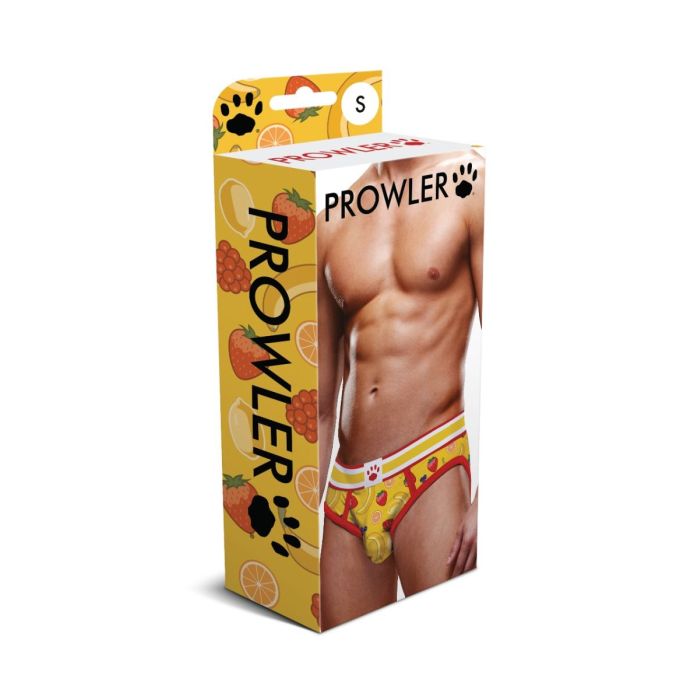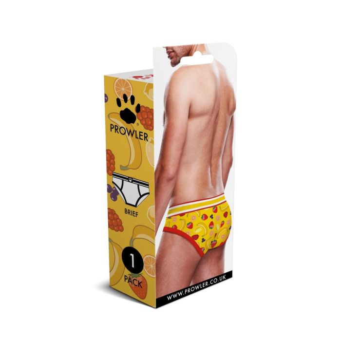 Zin in een ondeugend avondje? De Prowler Fruits Open Brief is zeker de oplossing als het gaat om een ondeugende mood. Daag je partner uit en laat het teasen maar beginnen. Deze sexy brief heeft een goede pasvorm, een kontblootstelling en heeft een strakke pasvorm! Tevens draagt de brief ook zeer comfortabel. De brief heeft een brede en elastische tailleband waardoor je voldoende ondersteuning zult krijgen. De pasvorm van deze brief is strak waardoor je mannelijke vormen goed zichtbaar zullen zijn. De brief heeft een sappige all-over print met allerlei fruitige lekkernijen zoals aardbeien, bananen en sinaasappelen. Dus verras je partner met het dragen van deze fruitpunch en geniet van elkaars aanwezigheid.