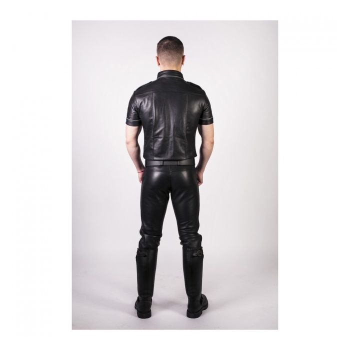 Dit klassieke shirt van Prowler Red heeft een paar kleine aanpassingen gehad waardoor het jou gegarandeerd op het lijf is geschreven. Het perfecte slim fit model zit perfect rond het lichaam en kleed super af. Het leren overhemd is de perfecte kijk op jouw butch favoriet maar dan met een moderne twist. De traditionele borstzakken zijn te sluiten met een drukknoopje en de kraag kan jij omhoog dragen voor een kinky look. Het shirt is gemaakt van soepel hoogwaardig leer wat bij de juiste verzorging zeer duurzaam zal zijn. Combineer dit shirt met je favoriete leren broek en je hebt de perfecte outfit.