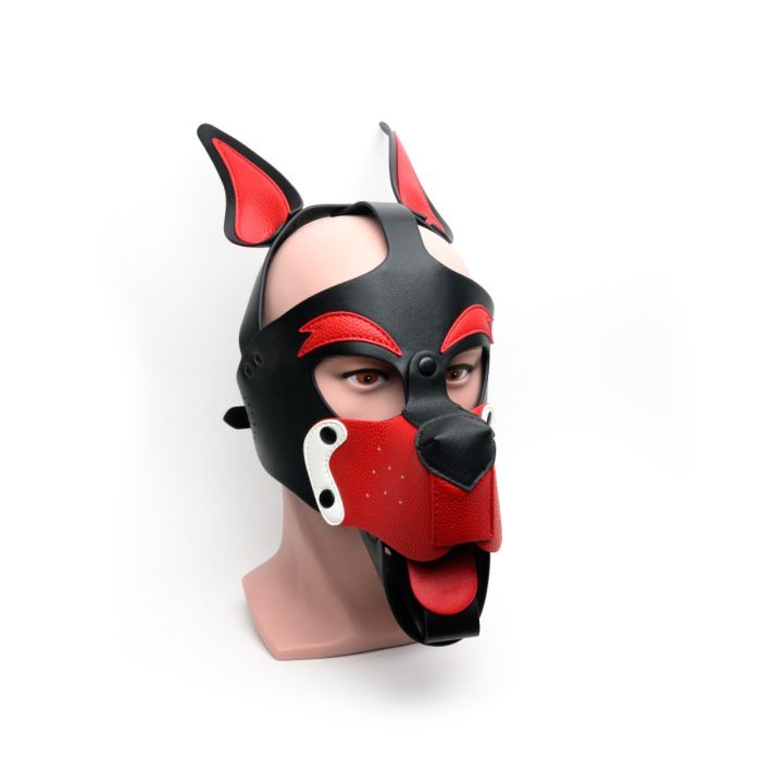 Puppy Play Masker 665 Leather - Zwart/Rood/Wit