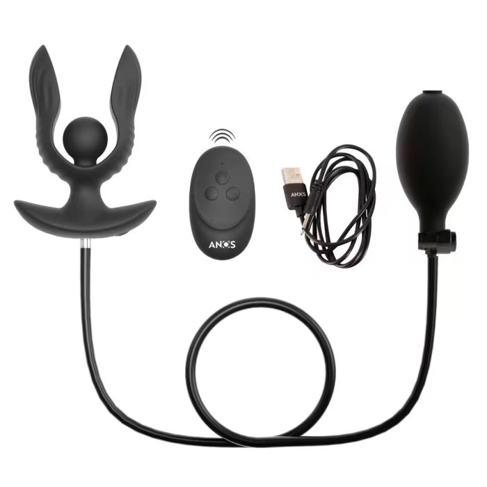 Anos RC Opblaasbare en Vibrerende Buttplug met Afstandsbediening - Zwart