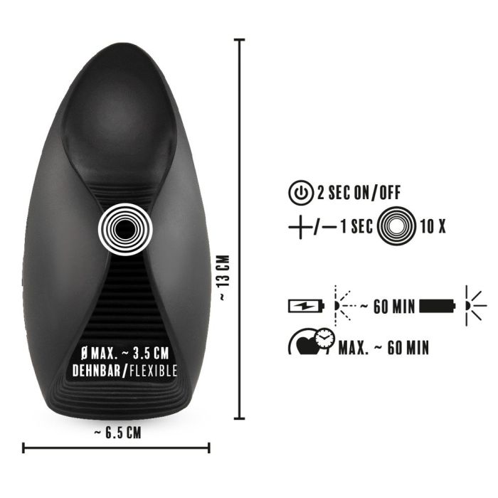 De Masturbator Vibrating Glans van Rebel heeft 10 vibratiestanden die je gemakkelijk kunt bedienen op het speeltje zelf. Vibrating Glans is gemaakt van siliconen en voelt erg aangenaam aan op het huid. De masturbator heeft flexibele vleugels die de penis aangenaam strak omsluiten, ook als hij niet in erectie is. Binnenin met opwindende stimulatiegroeven voor een intense massage. Als het speeltje leeg is laad hem dan eenvoudig op met de bijgeleverde USB oplaadkabel.