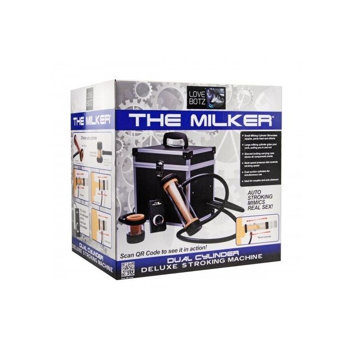 Deze sexmachine laat elke man genieten van een heerlijke blowjob dankzij de sensationele zuigende werking. De sexmachine heeft een enorme zuigkracht dat wordt opgewekt in de koffer. Sexmachine - The Milker wordt geleverd met twee cilinders. Eén cilinder die de gehele penis omhult en één cilinder die enkel de eikel of tepel omult. De bekabelde afstandsbediening maakt het mogelijk om de sexmachine gemakkelijk te kunnen bedienen. Je bepaalt helemaal zelf de zuigkracht. Of je nu voor zachte en tedere zuigingen gaat of juist het harde en ruigere werk, met sexmachine The Milker beleef je het allemaal!