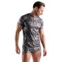 Maak een statement met het Shirt Stijlvol Mystiek Metallic van Svenjoyment! Dit opvallende shirt in een elegante zwart-zilver combinatie is perfect voor de modebewuste man die graag de aandacht trekt. Het unieke mystieke metallic dessin met een glinsterende zilveren glans zorgt ervoor dat je altijd in het oog springt, of je nu een avondje uit gaat of een casual dagje hebt. Dankzij de elastische en zachte stof voelt het shirt heerlijk aan op de huid en biedt het maximaal comfort, zodat je je vrij kunt bewegen. Met korte mouwen is dit shirt ideaal voor elke gelegenheid, van een feestje tot een ontspannen bijeenkomst. Voeg een vleugje luxe toe aan je garderobe en laat je stijl spreken met dit prachtige shirt!