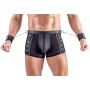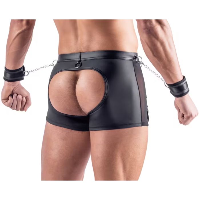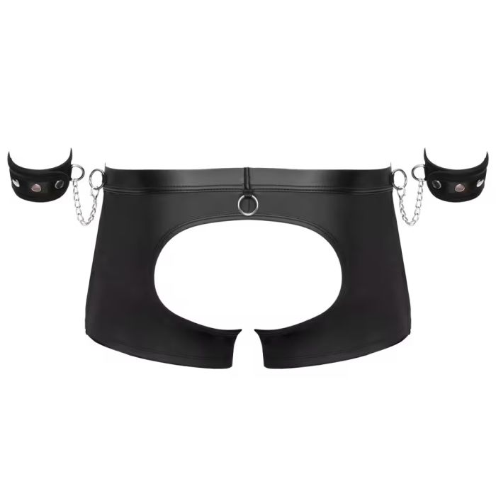 Voor de avontuurlijke geest is dit broekje een absolute must-have! De bijgeleverde zachte handboeien maken het geheel nog spannender. Dankzij de manchetringen aan de beklede tailleband en de zijkanten kun je de handboeien snel vastklikken met de karabijnkettingen, zodat je in een handomdraai klaar bent voor actie. De verstelbare klittenbandsluitingen van de handboeien zorgen ervoor dat je de perfecte pasvorm kunt creëren, wat bijdraagt aan zowel comfort als opwinding.
