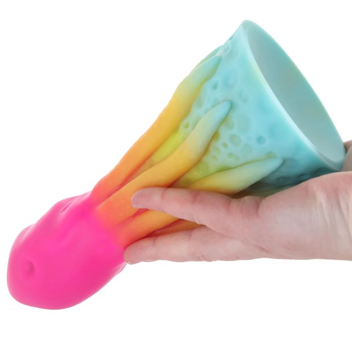 Deze unieke dildo heeft een dikke schacht die je een intens genot biedt bij elke beweging. Met zijn prachtige regenboogkleuren en een bolvormige, driehoekige kop, is hij niet alleen een lust voor het oog, maar ook een genot om te gebruiken. De acht poten zijn voorzien van een touwachtige textuur die extra stimulatie biedt terwijl je erop rijdt. Gemaakt van hoogwaardige, flexibele en ftalaatvrije siliconen, is deze dildo veilig voor je lichaam en ideaal voor gebruik met glijmiddel op waterbasis. Geniet van handsfree plezier dankzij de sterke zuignap, perfect voor spannende solo-avonturen of om je partner uit te nodigen voor kinky cosplay en fantasy-rollenspellen. Transformeer deze dildo eenvoudig in een strap-on met hun favoriete harnas en laat je fantasieën de vrije loop! Na gebruik is hij eenvoudig schoon te maken; was hem met warm water en milde zeep, spray met een toycleaner en laat hem aan de lucht drogen. Vergeet niet om hem te beschermen tegen direct zonlicht en warmte voor een langdurige levensduur. Voeg deze kleurrijke inktvis toe aan je collectie en ervaar een nieuwe dimensie van genot!