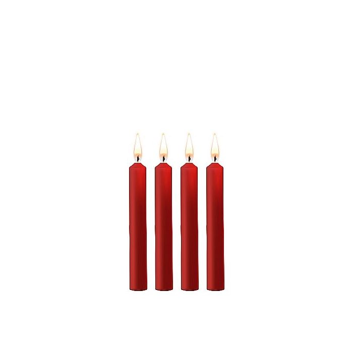 Ga voor de SM Kaarsen 4-Pack - Rood van Ouch om het BDSM spel een level hoger te tillen. De kinky set bestaat uit 4 kaarsen die jij over je partner heen kan laten druppelen voor een kinky en heet gevoel. De kaarsen branden op lage temperatuur (50 graden) zodat de huid niet verbrand maar zal net dat beetje extra pijn geven waar jouw sub zo naar verlangd.