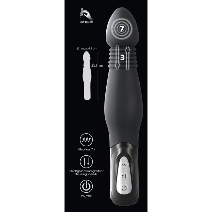 Deze heerlijke toy zal gegarandeerd jouw kontje verwennen. Doordat de anaal vibrator een stotende functie heeft, zal jij een realistische ervaring hebben. Het zachte materiaal zal heerlijk aanvoelen in je kontje. De top heeft een buttplug vorm en zal gelijdelijk je kontje in verdwijnen gevolgd door de rest. De 3 stoot standen en de 7 vibratie standen zijn makkelijk te bedienen met het push button systeem aan de onderkant van de toy.