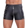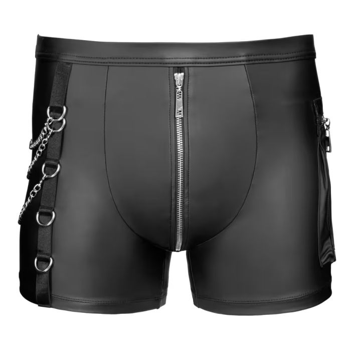 Aan de ene kant van de broek vind je een speelse touch met ringen en drie afneembare karabijnkettingen, perfect om je persoonlijke stijl te accentueren. Aan de andere kant is er een opgestikte cargozak met rits, ideaal voor het veilig opbergen van je essentials. Of je nu een casual dagje uit hebt of een avondje uit met vrienden, deze broek is de perfecte keuze voor elke gelegenheid.