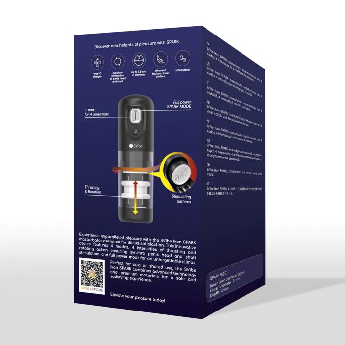 De SVibe Ikon SPARK masturbator is een meesterwerk dat technologie en design perfect combineert voor een levensechte ervaring. Met maar liefst 4 verschillende standen en 4 intensiteiten van stuwen en roteren, biedt deze masturbator ongeëvenaarde stimulatie voor zowel de penis hoofd als de schacht. De unieke 'volledige macht modus' zorgt voor een explosieve climax die je zintuigen op scherp zet en je niet snel zult vergeten. Of je nu solo wilt genieten of samen met een partner, de SVibe Ikon SPARK is de ideale keuze voor elke gelegenheid. Gemaakt van premium materialen, garandeert dit apparaat een veilige en bevredigende ervaring. Verhoog je plezier en laat je zintuigen prikkelen met de SVibe Ikon SPARK – jouw nieuwe beste vriend voor ultiem genot!