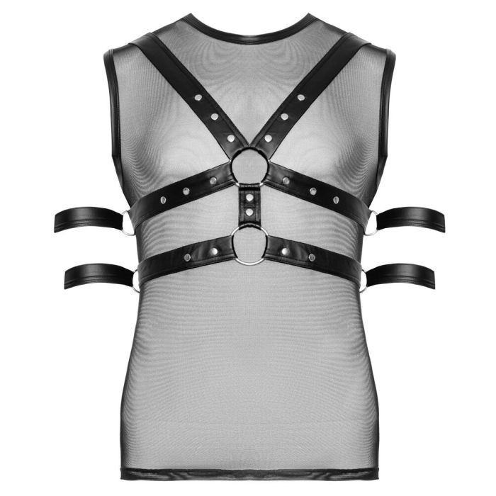 Maak kennis met de Svenjoyment BONDAGE set, een onweerstaanbare combinatie van stijl en functionaliteit die perfect is voor de moderne man die zijn avontuurlijke kant wil verkennen. Dit mouwloze shirt is niet alleen aantrekkelijk, maar ook ontworpen om je lichaam op een flatterende manier te accentueren. De voorkant is gemaakt van fijn Powernet, wat zorgt voor een knuffelige en ademende ervaring, terwijl de matte achterkant een stoere uitstraling geeft. De uitsparingen zijn elegant ingelijst in een matte look, waardoor je een gedurfde, maar toch verfijnde uitstraling hebt.