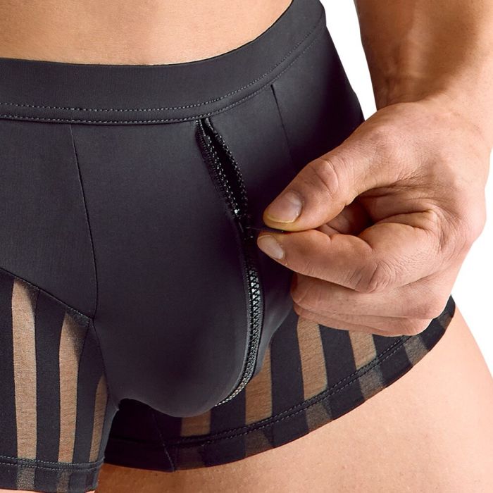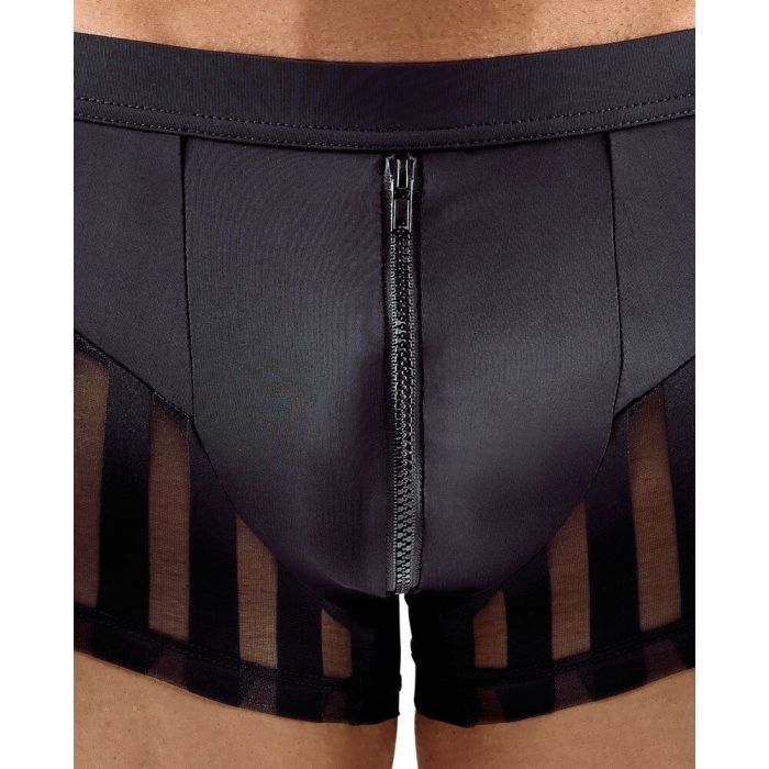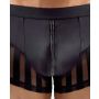 Ontdek de ultieme combinatie van stijl en comfort met het zwarte broekje van Svenjoyment, een must-have voor elke modebewuste man. Dit unieke onderkledingstuk is vervaardigd uit een innovatieve mix van materialen die zowel functionaliteit als esthetiek biedt. De bovenkant is gemaakt van een zachte, ondoorzichtige microvezel die een luxe gevoel op de huid geeft, terwijl de onderkant is uitgevoerd in een transparant, ademend netmateriaal dat een speelse en verleidelijke uitstraling creëert. De elastische samenstelling van de stoffen zorgt voor een perfecte pasvorm en ongeëvenaard draagcomfort, waardoor deze pants ideaal zijn voor zowel dagelijks gebruik als speciale gelegenheden.