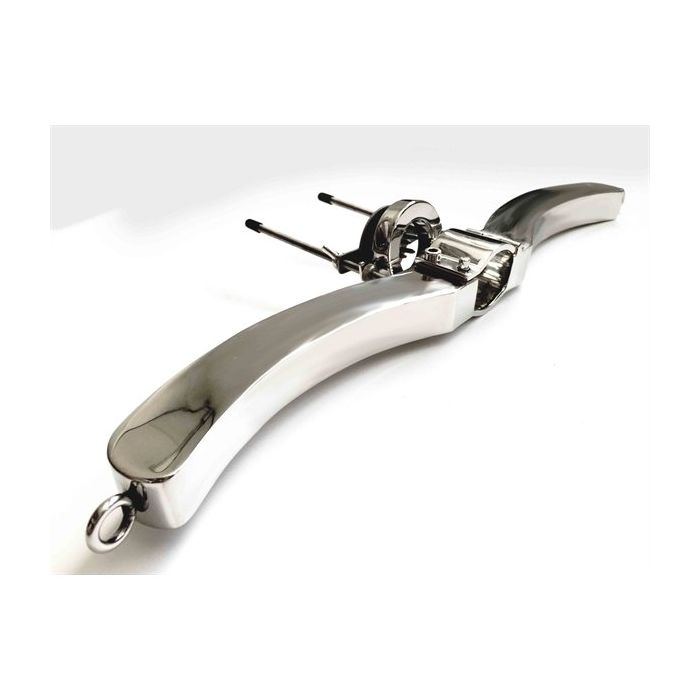 Wil jij je sub onder bedwang houden? Dan is de humbler steel bdsm humility device echt iets voor jou. Breng hem op de knieën met deze geweldige bdsm toy. Wanneer je sub vast zit in deze humbler device zal hij in voorovergebogen houding zijn over geleverd aan jou en kan jij doen en laten met hem wat je ook maar wil. De brede stukken komen achter de bovenbenen en de ballen worden in het midden vastgezet in het ballstretcher systeem. Doordat de ballstretcher verstelbaar is kun je zijn ballen uitrekken, maar ook wanneer je sub probeert op te staan zullen zijn ballen uitgerekt worden. Wanneer je sub echt stout is geweest kan jij er zelfs voor kiezen om zijn ballen te pletten. Dit is optioneel en hoeft dus niet gebruikt te worden.