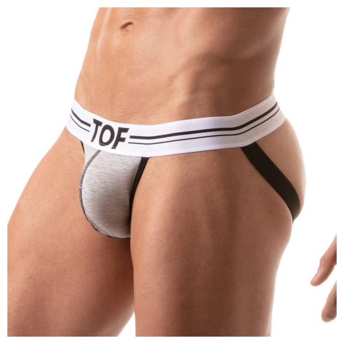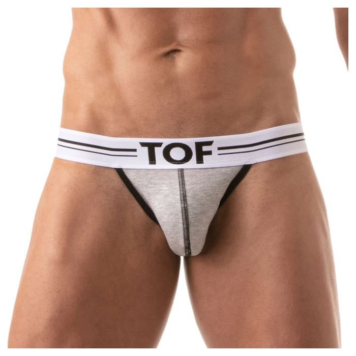De elastische tailleband, die laag op de heupen valt, accentueert je vormen op een flatterende manier en is voorzien van het herkenbare TOF Paris logo. Dit geeft niet alleen een sportieve uitstraling, maar zorgt ook voor extra ondersteuning. De open achterkant met witte elastische banden geeft je billen een subtiele lift, waardoor je een uitdagende en zelfverzekerde look creëert. Perfect voor onder je dagelijkse outfit of voor een speciale gelegenheid, deze jock strap is de ideale combinatie van functionaliteit en flair.