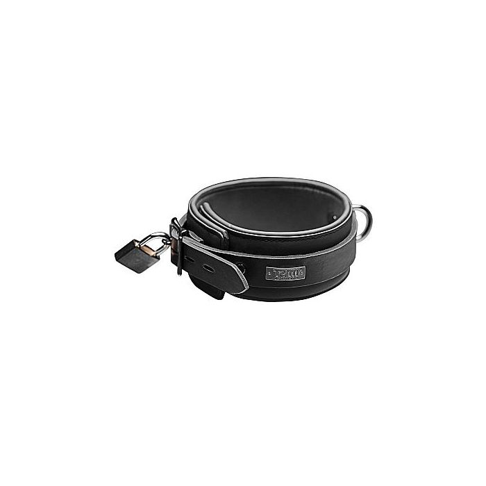 De halsband van Tom of Finland is in maat verstelbaar en is af te sluiten met een slotje. De voorkant is voorzien van een D-ring zodat je hem gemakkelijk kunt vast maken aan een ketting. Combineer de halsband met de metalen ketting van Tom Of Finland.